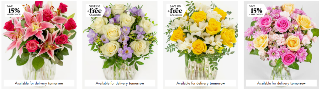 Browsing eFlorist reveals a well-structured catalogue that helps users quickly find what they are looking for. Flowers can be selected by occasion, flower type, colour, price range, or delivery method. This organisation is especially useful for customers who may not know exactly which bouquet they want but have a general idea of the occasion or budget.