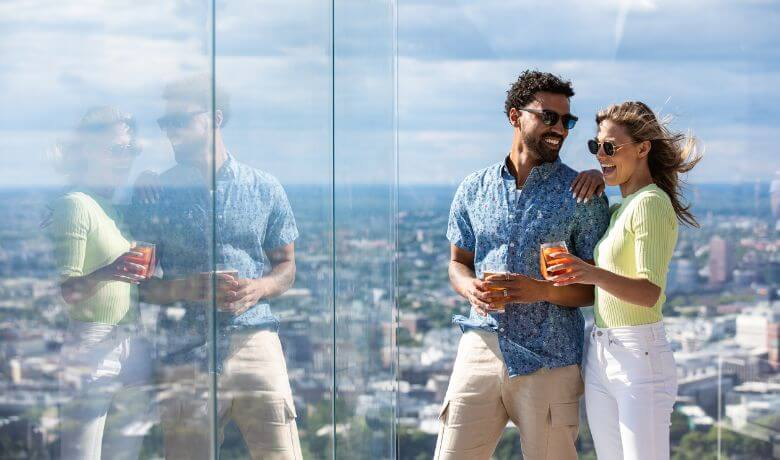 Visitors can also preview the dining and bar options, such as an indoor-outdoor cocktail lounge and a city-view bistro, giving a sense of how the experience extends beyond just sightseeing and becomes a social outing or special night out.