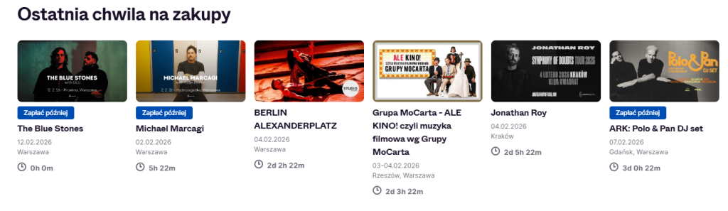 Platforma oferuje dostęp do różnych rodzajów rozrywki, dzięki czemu każdy znajdzie coś dla siebie – od fanów muzyki i teatru po miłośników sportu i rodzinnych wydarzeń edukacyjnych.
