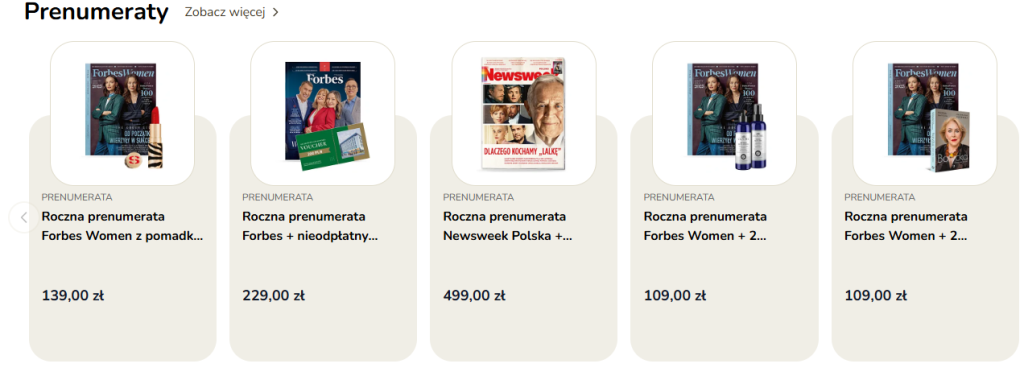 - prenumeraty znanych magazynów i czasopism,